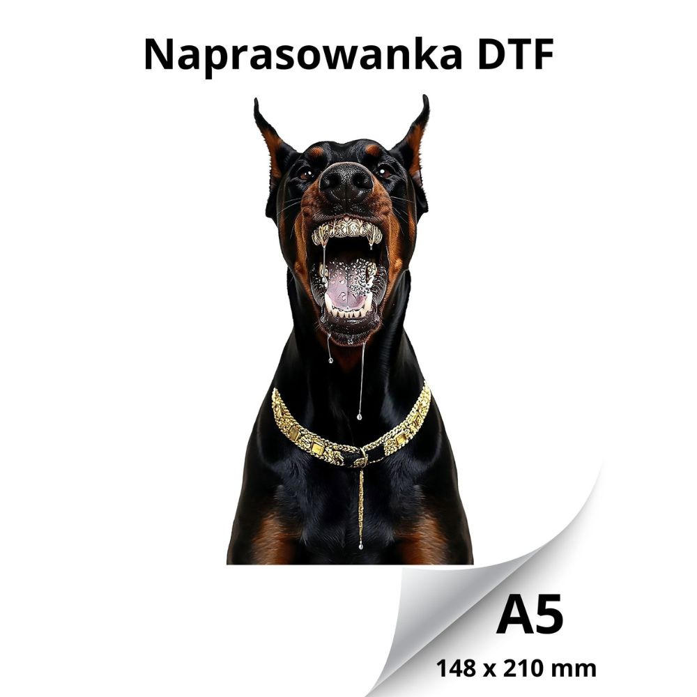 Oferujemy wysokiej jakości nadruk, naprasowankę na ubranie przedstawiającą Dobermana, idealną do personalizacji odzieży. Wykonana z trwałego materiału, nasza naprasowanka charakteryzuje się żywymi kolorami oraz szczegółowym designem, który z pewnością przyciągnie uwagę. Dzięki łatwej aplikacji, możesz szybko odmienić swój t-shirt, bluzę, torbę czy inne elementy garderoby, dodając im unikalnego charakteru. Naprasowanka jest odporna na pranie, co zapewnia długotrwały efekt. Zrób wyjątkowy prezent dla siebie lub bliskiej osoby, podkreślając miłość do uroczych, ale niebezpiecznych psiaków. Nasz produkt to doskonały wybór dla miłośników czworonogów oraz osób, które pragną wyróżnić się w tłumie.