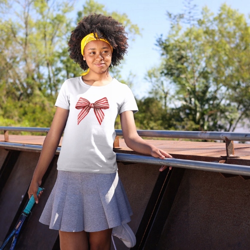 Oferujemy wysokiej jakości nadruk, naprasowankę na ubranie przedstawiającą uroczą kokardę w paski, idealną do personalizacji odzieży. Wykonana z trwałego materiału, nasza naprasowanka charakteryzuje się żywymi kolorami oraz szczegółowym designem, który z pewnością przyciągnie uwagę. Dzięki łatwej aplikacji, możesz szybko odmienić swój t-shirt, bluzę, torbę czy inne elementy garderoby, dodając im unikalnego charakteru. Naprasowanka jest odporna na pranie, co zapewnia długotrwały efekt. Zrób wyjątkowy prezent dla siebie lub bliskiej osoby. Nasz produkt to doskonały wybór dla osób lubiących delikatne i estetyczne akcenty. Świetnie sprawdzi się też na ubraniach dziewczynek.