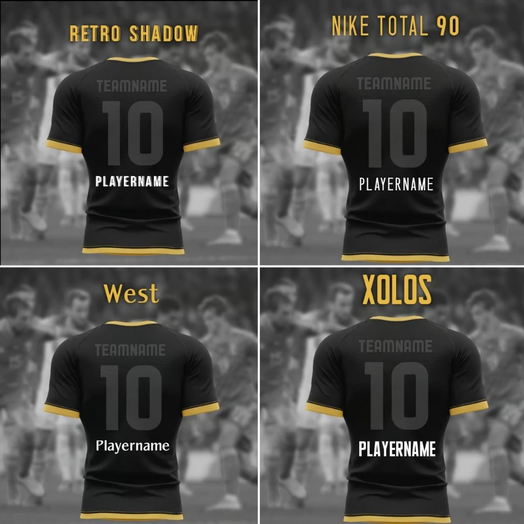 Nadaj swoim koszulkom indywidualny charakter! Dzięki nowoczesnej czcionce, popularnej wśród projektantów odzieży sportowej, każde imię będzie prezentować się profesjonalnie i wyraziście.