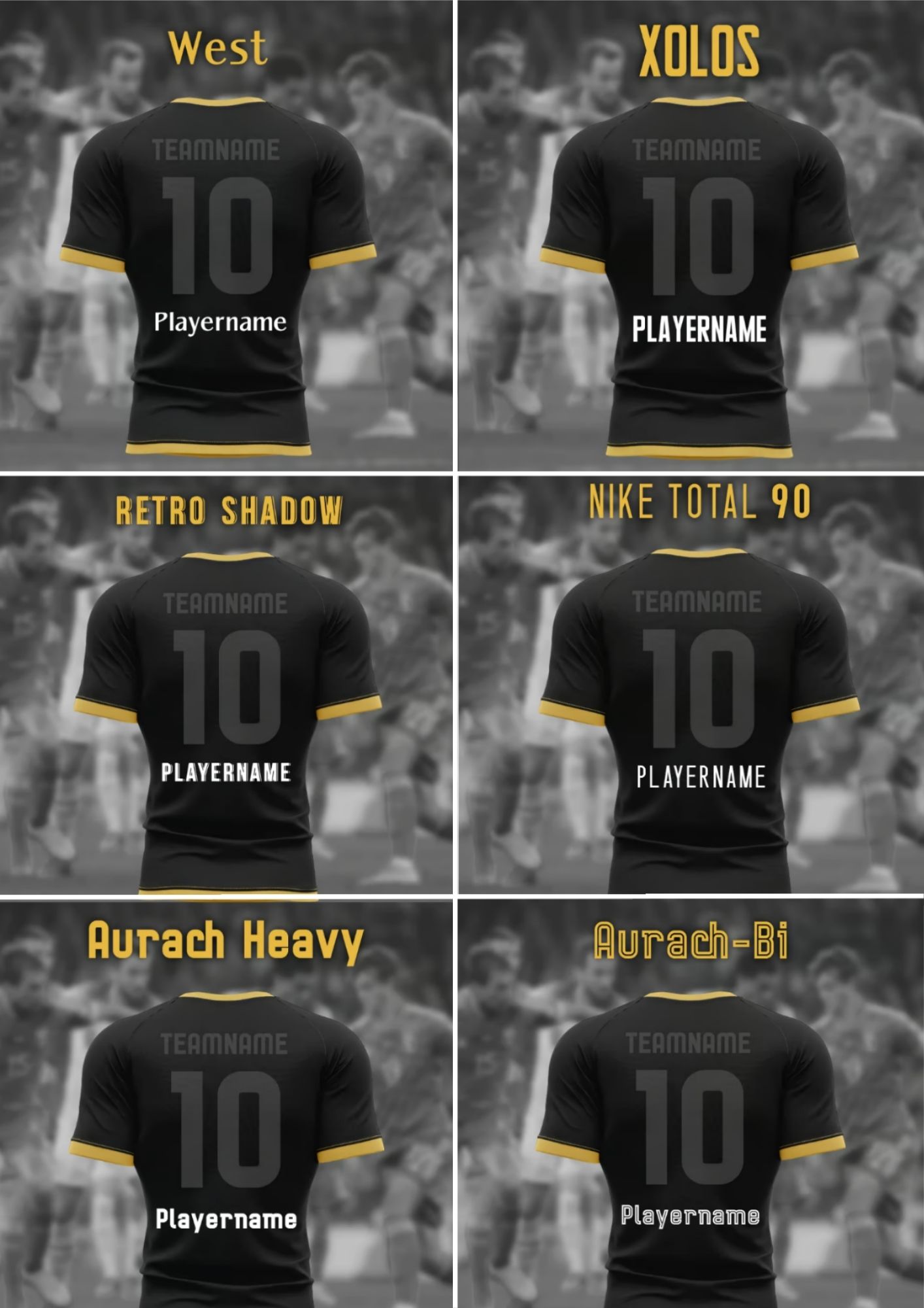 Nadaj swoim koszulkom piłkarskim wyjątkowy styl dzięki wyrazistej czcionce i najwyższej jakości nadrukom!